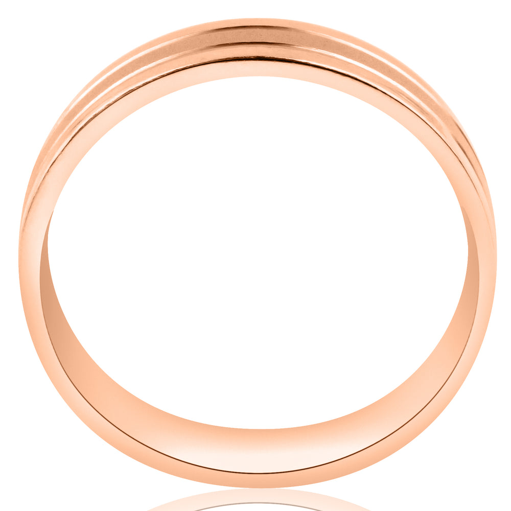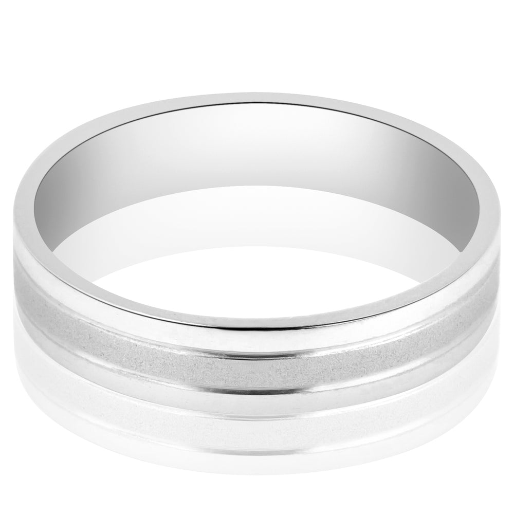 Alianza de matrimonio para dama terminado mate con dos franjas lisas. Disponible en oro blanco, rosa y amarillo 14K. Alianza sólida y con comfort fit para mayor comodidad.