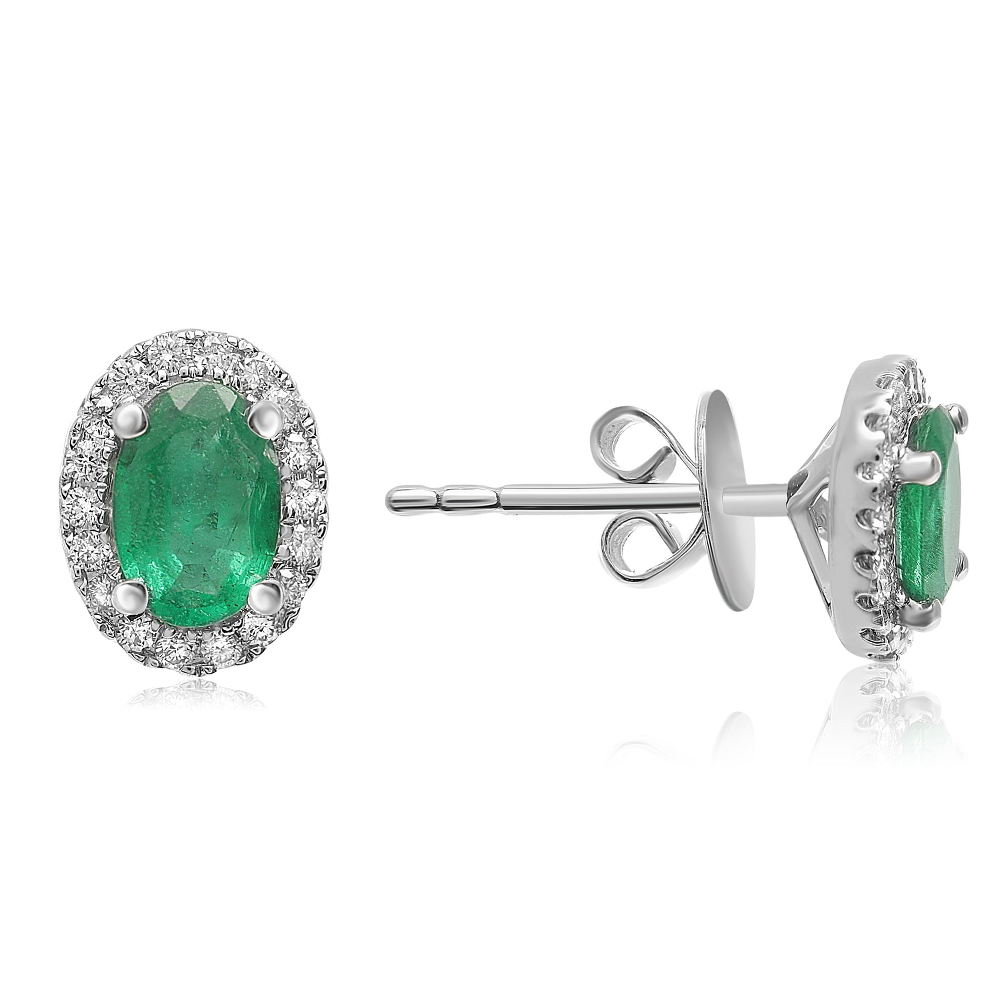 | Hermoso par de aretes con halo estilo ovalado. 1 CTW de Esmeralda Natural con 0.16 CTW de diamante natural. Disponible en oro blanco 18K |