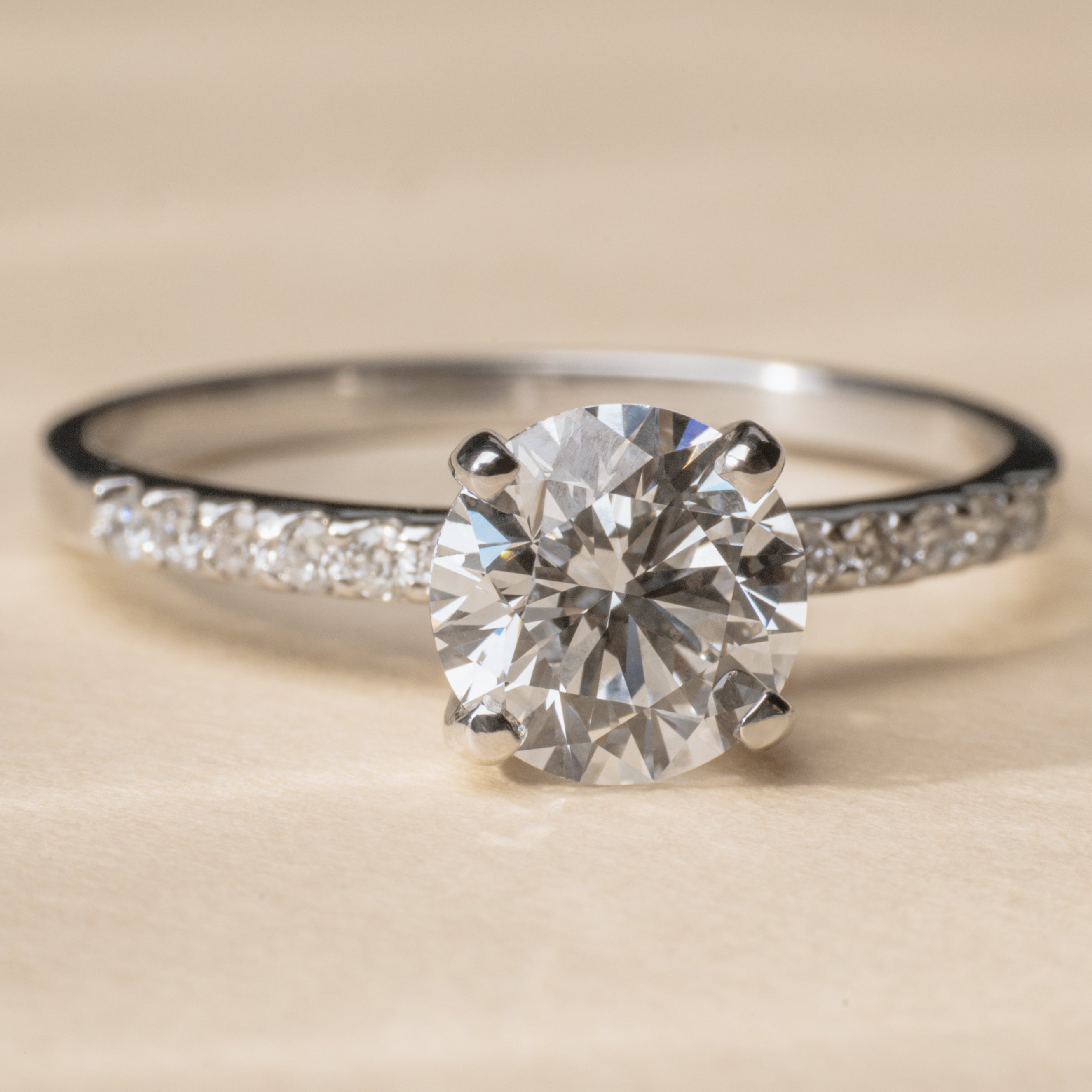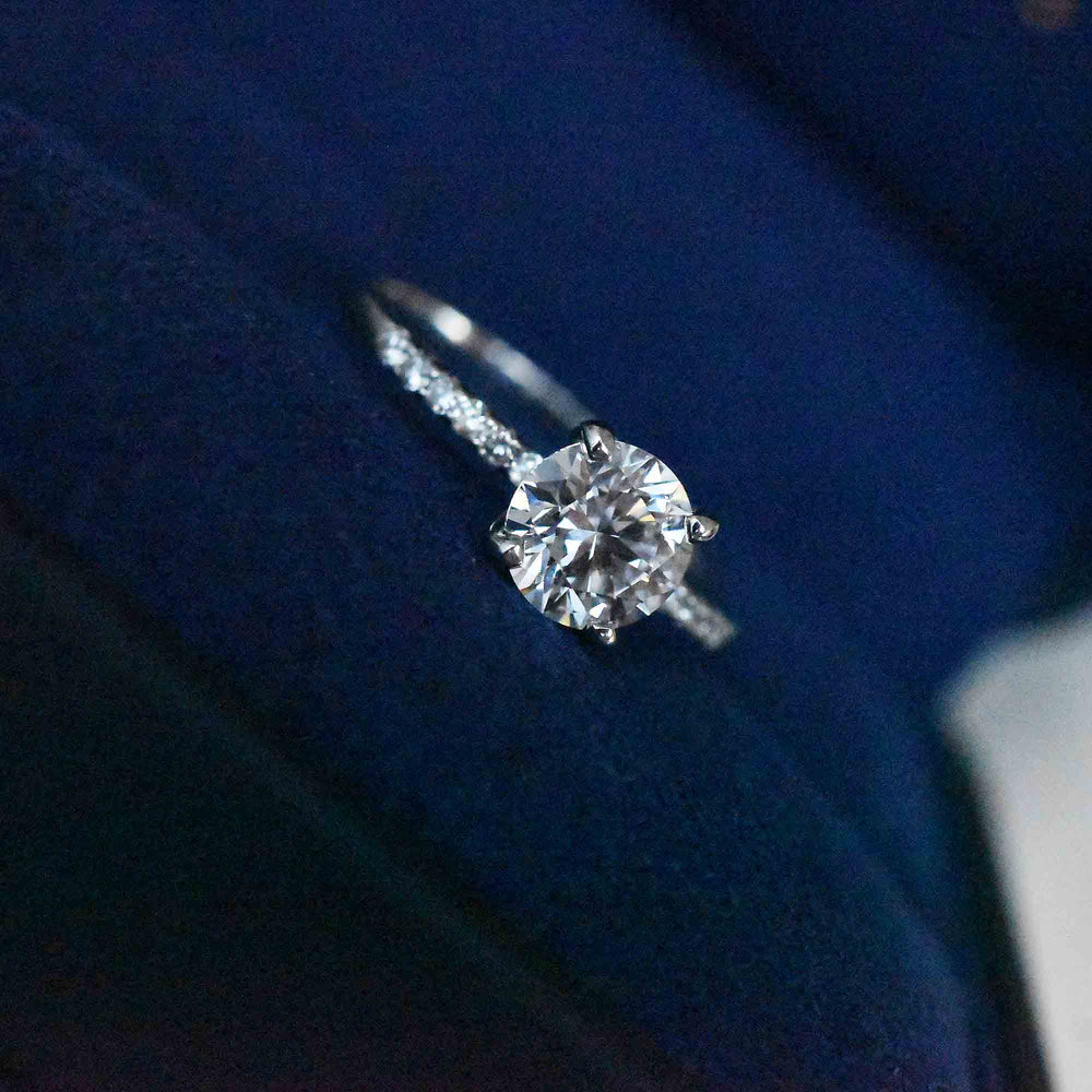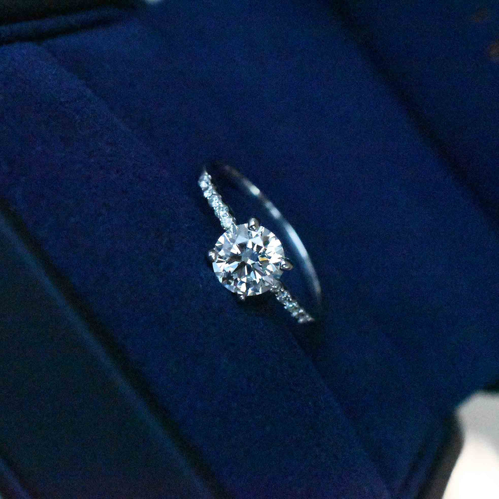 Anillo de compromiso pavé clásico en Oro blanco 14k