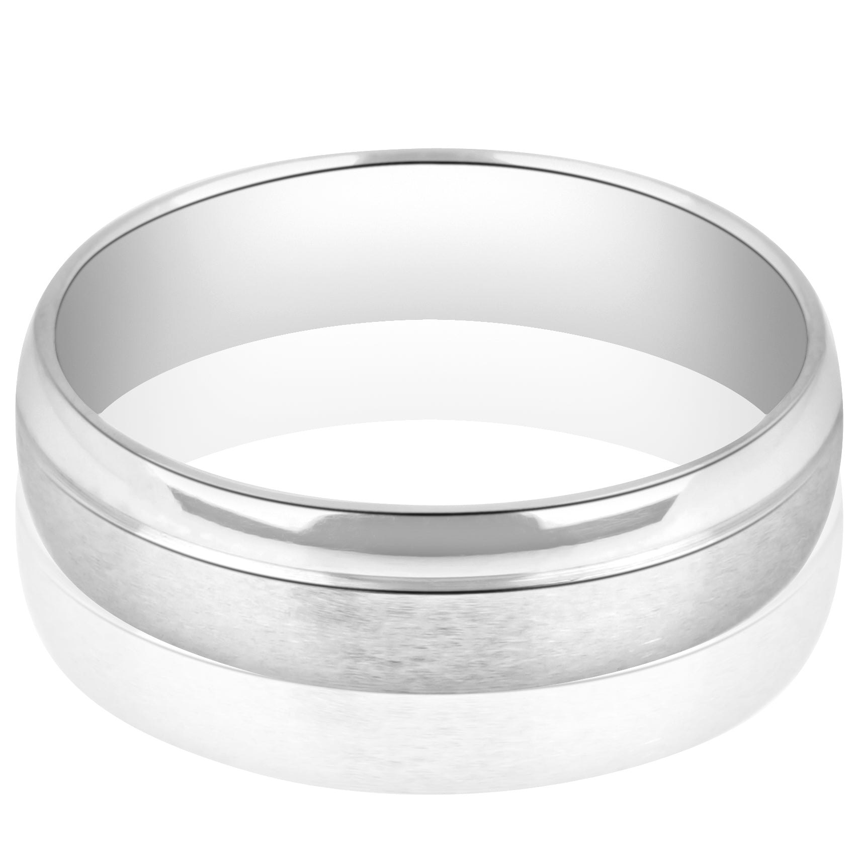 Alianza de matrimonio para caballero estilo mate media caña, con una fina franja superior lisa. Uno de nuestros favoritos. Disponible en oro blanco, rosa y amarillo 14K. Alianza sólida y con comfort fit para mayor comodidad.