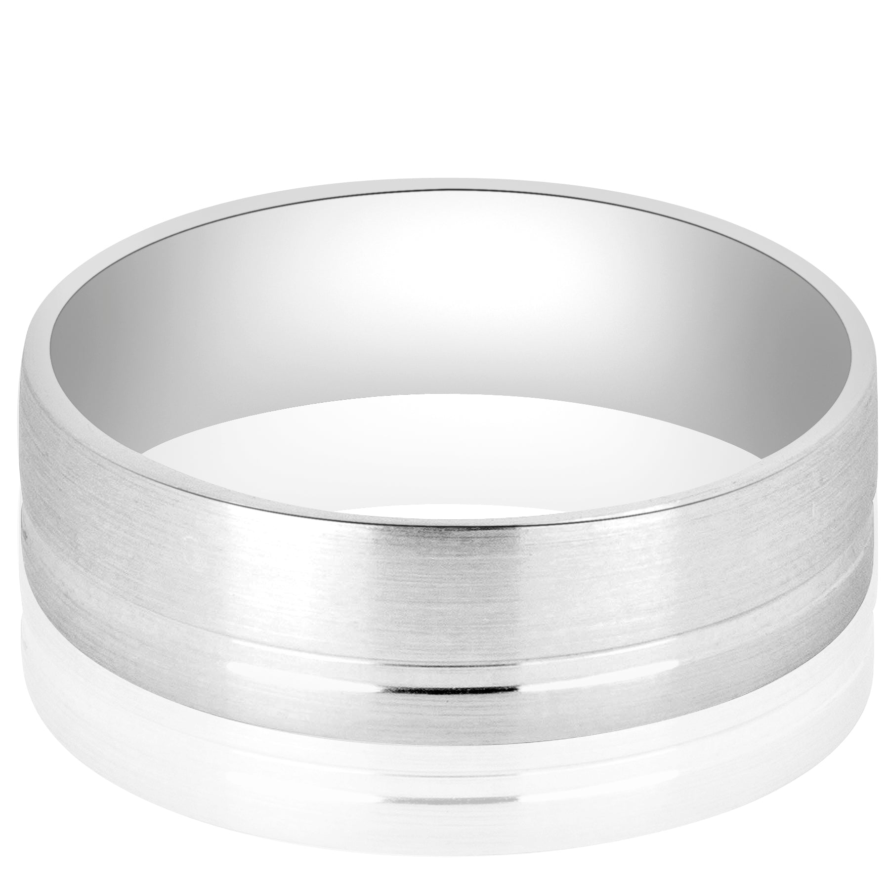 Alianza de matrimonio para caballero plana terminado mate lije, con una fina franja superior lisa. Disponible en oro blanco, rosa y amarillo 14K. Alianza sólida y con comfort fit para mayor comodidad.