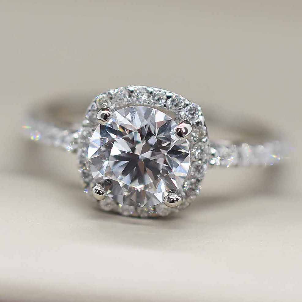 Anillo de compromiso Halo Pavé en Oro blanco 14k