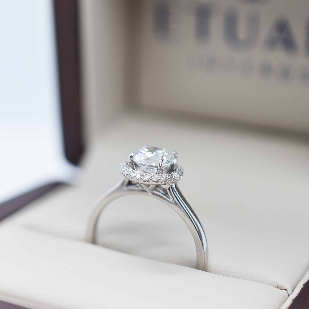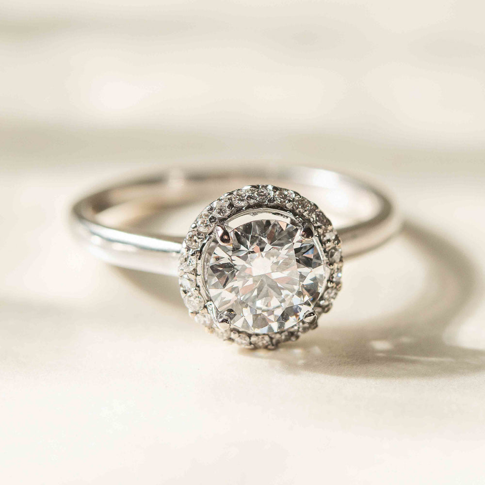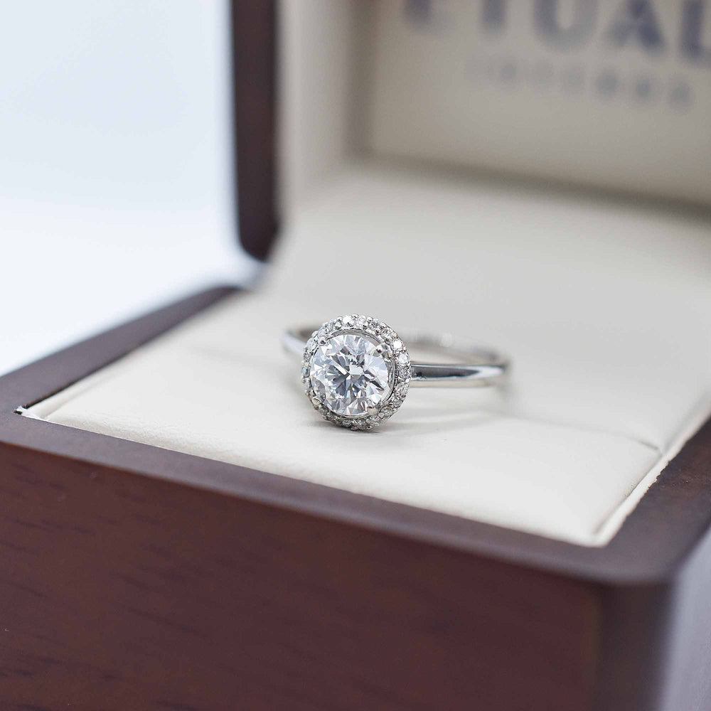 Anillo de compromiso Halo en Oro blanco 14K